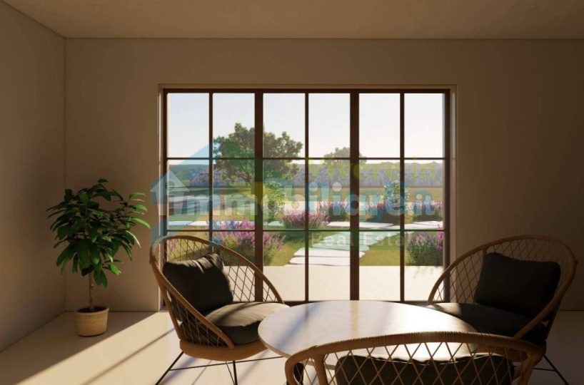 La forma dell’immobile, a mezza staffa di cavallo, garantisce luce in tutti gli ambienti dell’abitazione e permette l’accesso al giardino da ogni stanza. Il territorio della Valle d’Itria è soggetto a vincoli edilizi che limitano la costruzione di grandi superfici; quindi, una proprietà di questa estensione, completamente a norma, rappresenta una vera rarità.